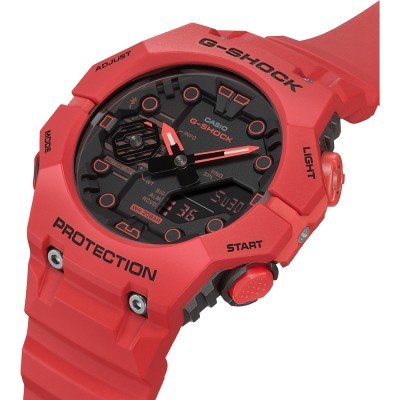Diese G-Shock Uhr hat ein Faserverstärktes Harz Gehäuse mit einem Durchmesser von 46 mm und ist mit einem Armband aus Kunstharz versehen. In der Uhr arbeitet ein Casio Uhrwerk. Das Glas der Uhr besteht aus Mineral - Glas.