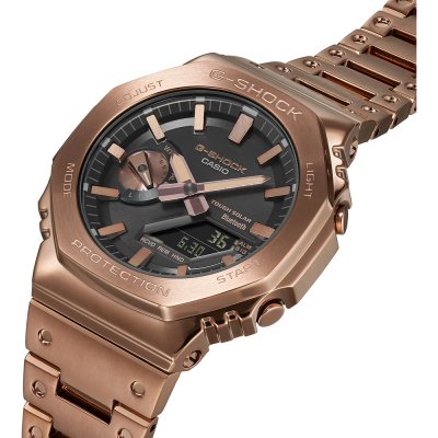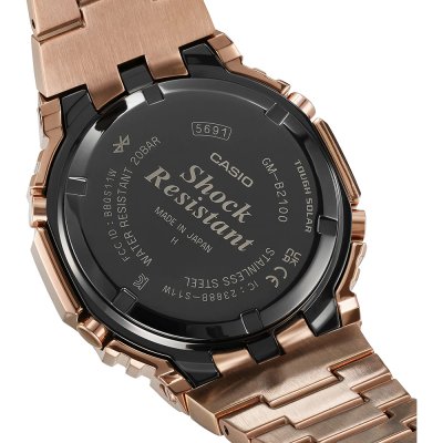 Diese G-Shock Uhr hat ein Edelstahl Gehäuse mit einem Durchmesser von 44.4 mm und ist mit einem Armband aus Metall versehen. In der Uhr arbeitet ein Casio Uhrwerk. Das Glas der Uhr besteht aus Mineral - Glas.