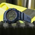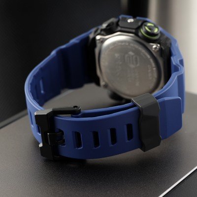 Diese G-Shock Uhr hat ein Faserverstärktes Harz Gehäuse mit einem Durchmesser von 46 mm und ist mit einem Armband aus Kunstharz versehen. In der Uhr arbeitet ein Casio Uhrwerk. Das Glas der Uhr besteht aus Mineral - Glas.