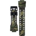 Dieses G-Shock Uhrarmband ist aus kunstharz gefertigt und wird mit druckstifte an der Uhr befestigt. Das Band hat eine Breite von 29 mm und wird mit einer dornschließe geschlossen. Das Uhrenarmband hat keine gerade Halterung, was bedeutet, dass dieses Band nur für die unten aufgeführten Uhren geeignet ist.