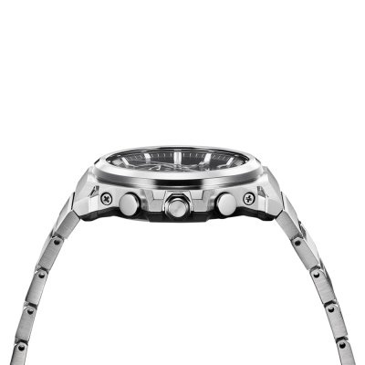 Diese G-Shock Uhr hat ein Edelstahl Gehäuse mit einem Durchmesser von 44 mm und ist mit einem Armband aus Edelstahl versehen. In der Uhr arbeitet ein Casio Uhrwerk. Das Glas der Uhr besteht aus Mineral - Glas.