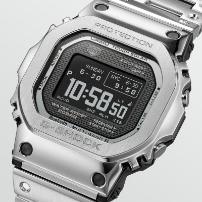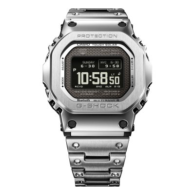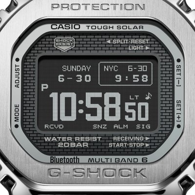 Diese G-Shock Uhr hat ein Edelstahl Gehäuse mit einem Durchmesser von 43.2 mm und ist mit einem Armband aus Edelstahl versehen. In der Uhr arbeitet ein Casio Uhrwerk. Das Glas der Uhr besteht aus Mineral - Glas.