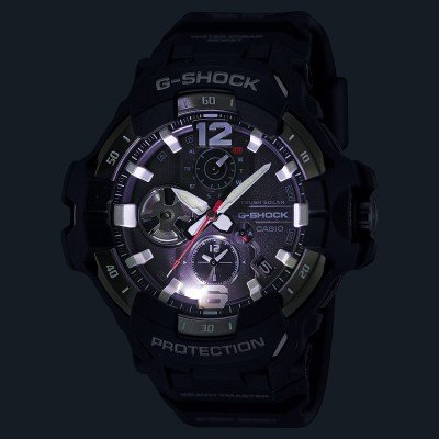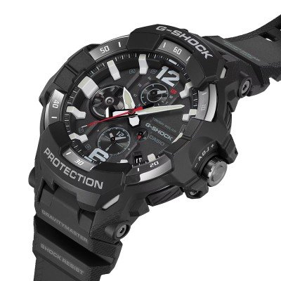 Diese G-Shock Uhr hat ein Karbonverstärktes Kunstharz Gehäuse mit einem Durchmesser von 54.7 mm und ist mit einem Armband aus Bio-Kunststoff versehen. In der Uhr arbeitet ein Casio Uhrwerk. Das Glas der Uhr besteht aus Mineral - Glas.