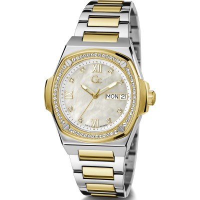 Diese GC Uhr hat ein Edelstahl Gehäuse mit einem Durchmesser von 36 mm und ist mit einem Armband aus Edelstahl versehen. In der Uhr arbeitet ein Ronda Uhrwerk. Das Glas der Uhr besteht aus Saphirbeschichtetes Mineralglas - Glas.