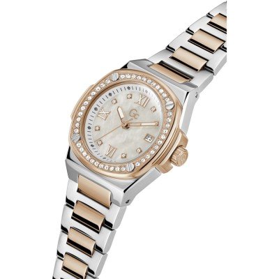 Diese GC Uhr hat ein Edelstahl Gehäuse mit einem Durchmesser von 30 mm und ist mit einem Armband aus Edelstahl versehen. In der Uhr arbeitet ein Ronda Uhrwerk. Das Glas der Uhr besteht aus Saphirbeschichtetes Mineralglas - Glas.