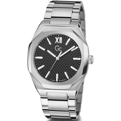 Diese GC Uhr hat ein Edelstahl Gehäuse mit einem Durchmesser von 42 mm und ist mit einem Armband aus Edelstahl versehen. In der Uhr arbeitet ein Ronda Uhrwerk. Das Glas der Uhr besteht aus Saphirbeschichtetes Mineralglas - Glas.