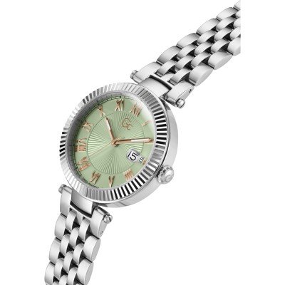 Diese GC Uhr hat ein Edelstahl Gehäuse mit einem Durchmesser von 38 mm und ist mit einem Armband aus Edelstahl versehen.