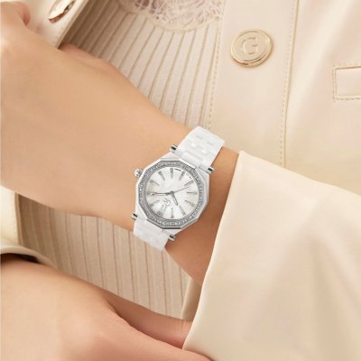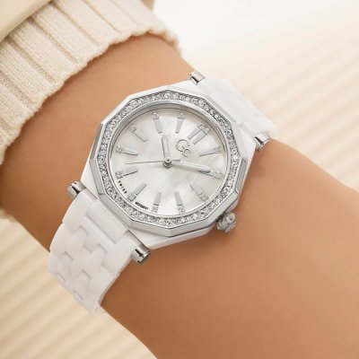 Diese GC Uhr hat ein Keramik Gehäuse mit einem Durchmesser von 32 mm und ist mit einem Armband aus Keramik versehen.
