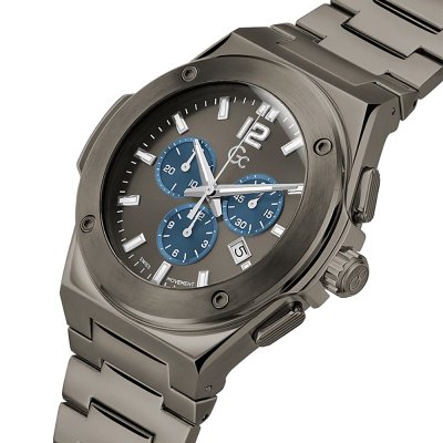 Diese GC Uhr hat ein Edelstahl Gehäuse mit einem Durchmesser von 44 mm und ist mit einem Armband aus Edelstahl versehen. In der Uhr arbeitet ein Ronda Uhrwerk. Das Glas der Uhr besteht aus Saphirbeschichtetes Mineralglas - Glas.