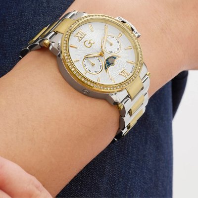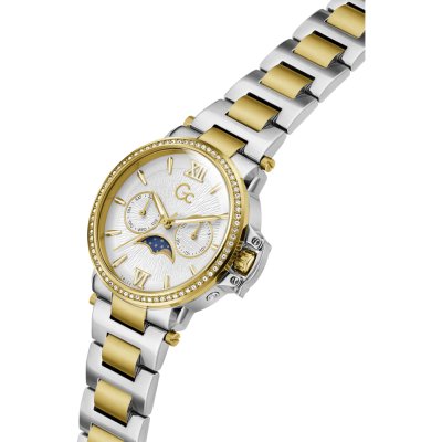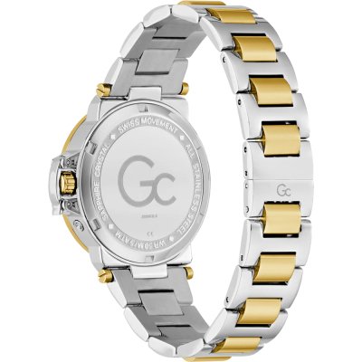 Diese GC Uhr hat ein Edelstahl Gehäuse mit einem Durchmesser von 36 mm und ist mit einem Armband aus Edelstahl versehen. In der Uhr arbeitet ein Ronda Uhrwerk. Das Glas der Uhr besteht aus Sapphir - Glas.