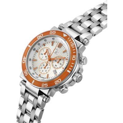 Diese GC Uhr hat ein Edelstahl Gehäuse mit einem Durchmesser von 44 mm und ist mit einem Armband aus Edelstahl versehen. In der Uhr arbeitet ein Ronda Uhrwerk. Das Glas der Uhr besteht aus Saphirbeschichtetes Mineralglas - Glas.