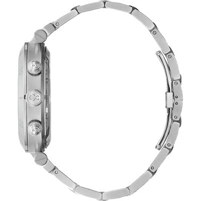Diese GC Uhr hat ein Edelstahl Gehäuse mit einem Durchmesser von 44 mm und ist mit einem Armband aus Edelstahl versehen. In der Uhr arbeitet ein Ronda Uhrwerk. Das Glas der Uhr besteht aus Saphirbeschichtetes Mineralglas - Glas.