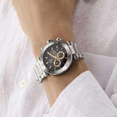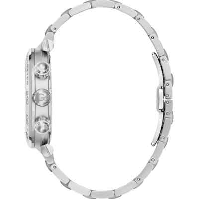 Diese GC Uhr hat ein Edelstahl Gehäuse mit einem Durchmesser von 44 mm und ist mit einem Armband aus Edelstahl versehen. In der Uhr arbeitet ein Ronda Uhrwerk. Das Glas der Uhr besteht aus Sapphir - Glas.