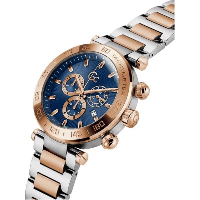 Diese GC Uhr hat ein Edelstahl Gehäuse mit einem Durchmesser von 44 mm und ist mit einem Armband aus Edelstahl versehen. In der Uhr arbeitet ein Ronda Uhrwerk. Das Glas der Uhr besteht aus Sapphir - Glas.