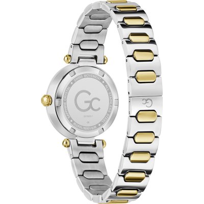 Diese GC Uhr hat ein Edelstahl Gehäuse mit einem Durchmesser von 30 mm und ist mit einem Armband aus Edelstahl versehen. In der Uhr arbeitet ein Ronda Uhrwerk. Das Glas der Uhr besteht aus Sapphir - Glas.