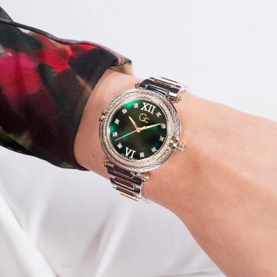 Diese GC Uhr hat ein Edelstahl Gehäuse mit einem Durchmesser von 36.5 mm und ist mit einem Armband aus Edelstahl versehen. In der Uhr arbeitet ein Ronda Uhrwerk. Das Glas der Uhr besteht aus Saphirbeschichtetes Mineralglas - Glas.
