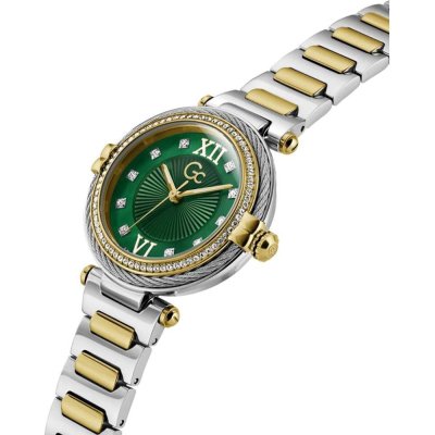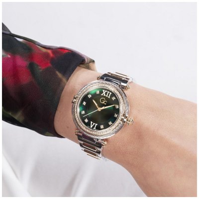 Diese GC Uhr hat ein Edelstahl Gehäuse mit einem Durchmesser von 36.5 mm und ist mit einem Armband aus Edelstahl versehen.