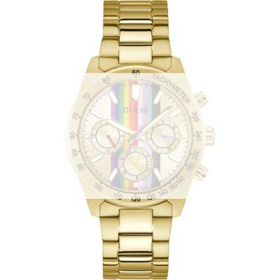 Dieses Guess Uhrarmband ist aus edelstahl gefertigt und wird mit druckstifte an der Uhr befestigt. Das Band hat eine Breite von 22 mm und wird mit einer sicherheitsfaltschließe geschlossen. Das Uhrenarmband hat keine gerade Halterung, was bedeutet, dass dieses Band nur für die unten aufgeführten Uhren geeignet ist.