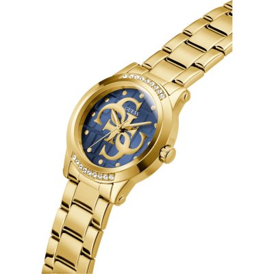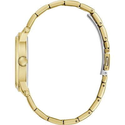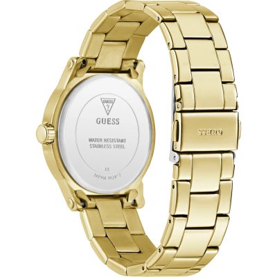 Diese Guess Uhr hat ein Edelstahl Gehäuse mit einem Durchmesser von 36 mm und ist mit einem Armband aus Edelstahl versehen. In der Uhr arbeitet ein Seiko Uhrwerk. Das Glas der Uhr besteht aus Mineral - Glas.