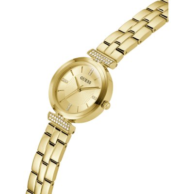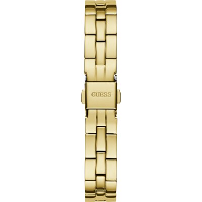 Diese Guess Uhr hat ein Edelstahl Gehäuse mit einem Durchmesser von 28 mm und ist mit einem Armband aus Edelstahl versehen.
