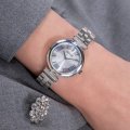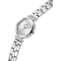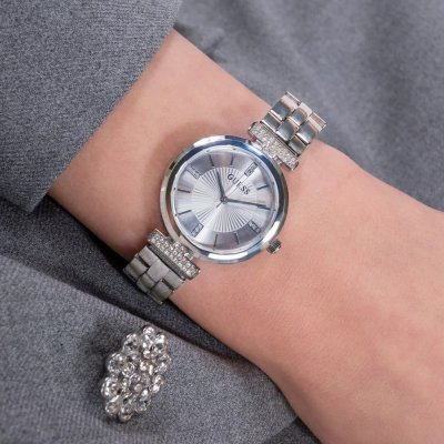 Diese Guess Uhr hat ein Edelstahl Gehäuse mit einem Durchmesser von 28 mm und ist mit einem Armband aus Edelstahl versehen. In der Uhr arbeitet ein Seiko Uhrwerk. Das Glas der Uhr besteht aus Mineral - Glas.
