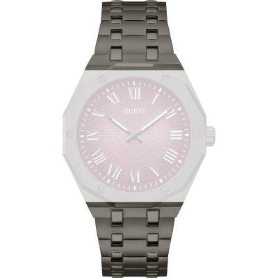 Dieses Guess Uhrarmband ist aus edelstahl gefertigt und wird mit druckstifte an der Uhr befestigt. Das Band hat eine Breite von 24 mm und wird mit einer faltschließe mit Druckknöpfen geschlossen. Das Uhrenarmband hat keine gerade Halterung, was bedeutet, dass dieses Band nur für die unten aufgeführten Uhren geeignet ist.
