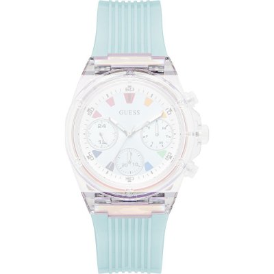 Dieses Guess Uhrarmband ist aus silikon gefertigt und wird mit druckstifte an der Uhr befestigt. Das Band hat eine Breite von 24 mm und wird mit einer dornschließe geschlossen. Das Uhrenarmband hat keine gerade Halterung, was bedeutet, dass dieses Band nur für die unten aufgeführten Uhren geeignet ist.