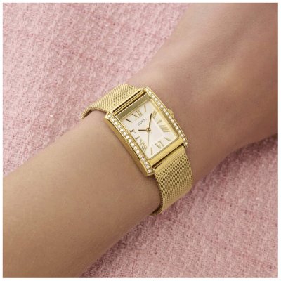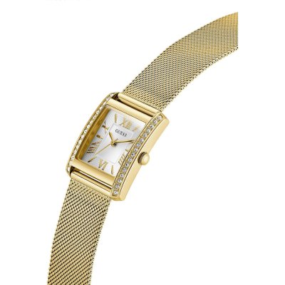 Diese Guess Uhr hat ein Edelstahl Gehäuse mit einem Durchmesser von 23 mm und ist mit einem Armband aus Edelstahl versehen. In der Uhr arbeitet ein Seiko Instruments Inc. Uhrwerk. Das Glas der Uhr besteht aus Mineral - Glas.