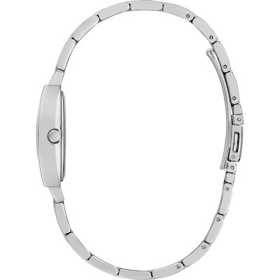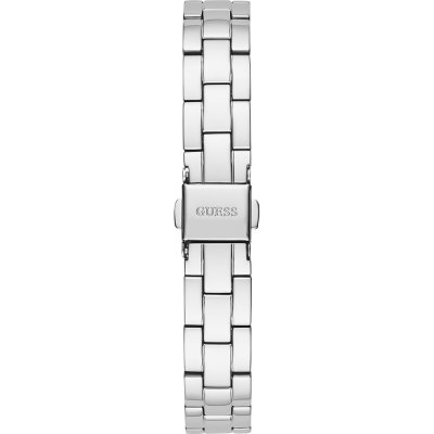 Diese Guess Uhr hat ein Edelstahl Gehäuse mit einem Durchmesser von 25 mm und ist mit einem Armband aus Edelstahl versehen. In der Uhr arbeitet ein Seiko Uhrwerk. Das Glas der Uhr besteht aus Mineral - Glas.