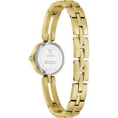 Diese Guess Uhr hat ein Edelstahl Gehäuse mit einem Durchmesser von 23 mm und ist mit einem Armband aus Edelstahl versehen. In der Uhr arbeitet ein Seiko Uhrwerk. Das Glas der Uhr besteht aus Mineral - Glas.