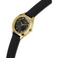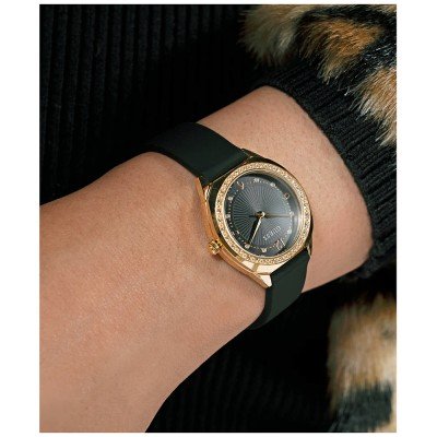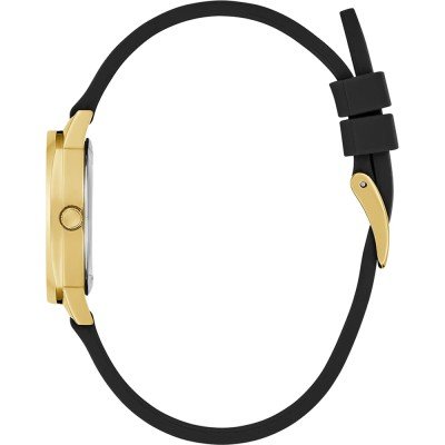 Diese Guess Uhr hat ein Edelstahl Gehäuse mit einem Durchmesser von 30 mm und ist mit einem Armband aus Kautschuk versehen. In der Uhr arbeitet ein Seiko Uhrwerk. Das Glas der Uhr besteht aus Mineral - Glas.