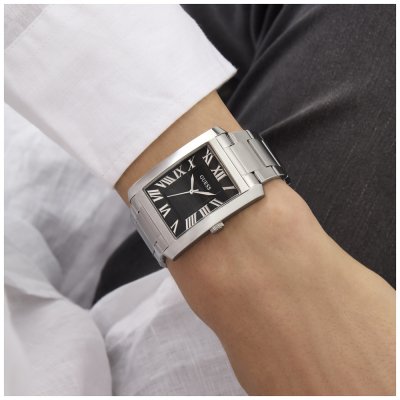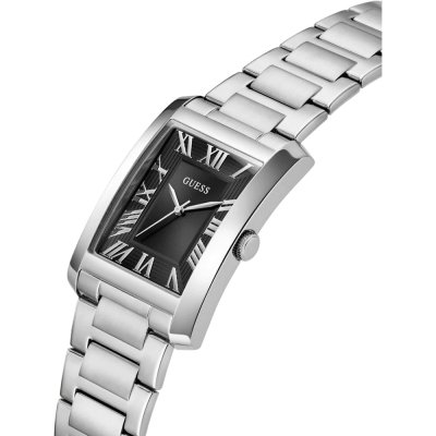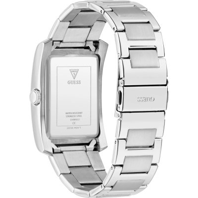 Diese Guess Uhr hat ein Edelstahl Gehäuse mit einem Durchmesser von 33.7 mm und ist mit einem Armband aus Edelstahl versehen.