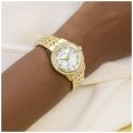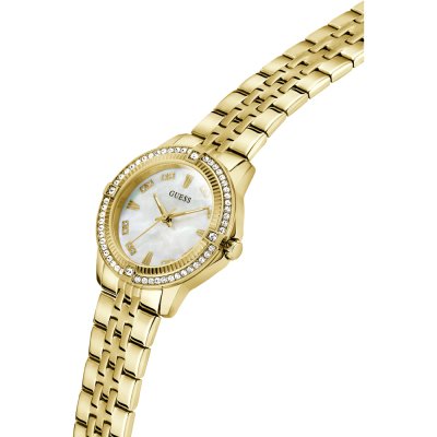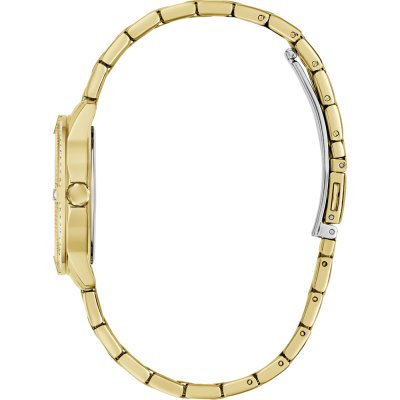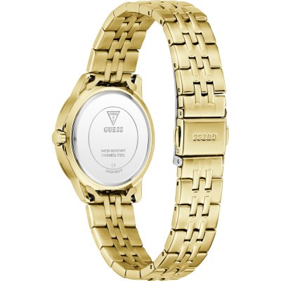 Diese Guess Uhr hat ein Edelstahl Gehäuse mit einem Durchmesser von 32 mm und ist mit einem Armband aus Edelstahl versehen. In der Uhr arbeitet ein Seiko Uhrwerk. Das Glas der Uhr besteht aus Mineral - Glas.
