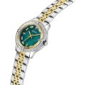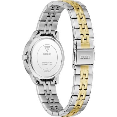 Diese Guess Uhr hat ein Edelstahl Gehäuse mit einem Durchmesser von 32 mm und ist mit einem Armband aus Edelstahl versehen. In der Uhr arbeitet ein Seiko Uhrwerk. Das Glas der Uhr besteht aus Mineral - Glas.