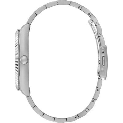 Diese Guess Uhr hat ein Edelstahl Gehäuse mit einem Durchmesser von 42 mm und ist mit einem Armband aus Metall versehen. In der Uhr arbeitet ein Seiko Instruments Inc. Uhrwerk. Das Glas der Uhr besteht aus Mineral - Glas.