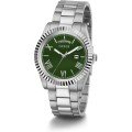 Diese Guess Uhr hat ein Edelstahl Gehäuse mit einem Durchmesser von 42 mm und ist mit einem Armband aus Metall versehen. In der Uhr arbeitet ein Seiko Instruments Inc. Uhrwerk. Das Glas der Uhr besteht aus Mineral - Glas.