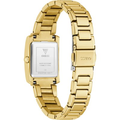Diese Guess Uhr hat ein Edelstahl Gehäuse mit einem Durchmesser von 23 mm und ist mit einem Armband aus Edelstahl versehen. In der Uhr arbeitet ein Seiko Uhrwerk. Das Glas der Uhr besteht aus Mineral - Glas.