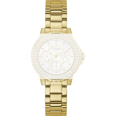 Dieses Guess Uhrarmband ist aus metall gefertigt und wird mit druckstifte an der Uhr befestigt. Das Band hat eine Breite von 16 mm und wird mit einer faltschließe mit Druckknöpfen geschlossen. Das Uhrenarmband hat keine gerade Halterung, was bedeutet, dass dieses Band nur für die unten aufgeführten Uhren geeignet ist.