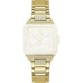 Dieses Guess Uhrarmband ist aus edelstahl gefertigt und wird mit druckstifte an der Uhr befestigt. Das Band hat eine Breite von 20 mm und wird mit einer faltschließe mit Druckknöpfen geschlossen. Das Uhrenarmband hat keine gerade Halterung, was bedeutet, dass dieses Band nur für die unten aufgeführten Uhren geeignet ist.