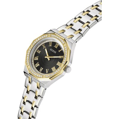Diese Guess Uhr hat ein Edelstahl Gehäuse mit einem Durchmesser von 36 mm und ist mit einem Armband aus Edelstahl versehen.