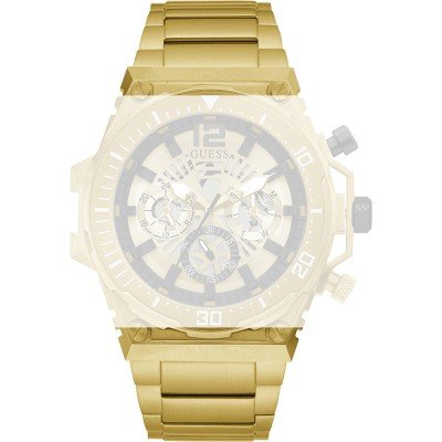 Dieses Guess Uhrarmband ist aus edelstahl gefertigt und wird mit druckstifte an der Uhr befestigt. Das Band hat eine Breite von 30 mm und wird mit einer faltschließe mit Druckknöpfen geschlossen. Das Uhrenarmband hat keine gerade Halterung, was bedeutet, dass dieses Band nur für die unten aufgeführten Uhren geeignet ist.