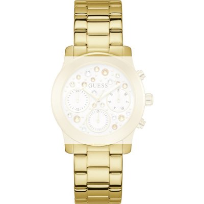 Dieses Guess Uhrarmband ist aus metall gefertigt und wird mit druckstifte an der Uhr befestigt. Das Band hat eine Breite von 20 mm und wird mit einer faltschließe mit Druckknöpfen geschlossen. Das Uhrenarmband hat keine gerade Halterung, was bedeutet, dass dieses Band nur für die unten aufgeführten Uhren geeignet ist.