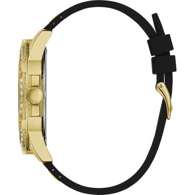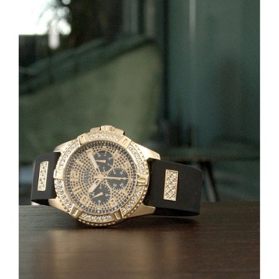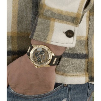 Diese Guess Uhr hat ein Edelstahl Gehäuse mit einem Durchmesser von 48 mm und ist mit einem Armband aus Kautschuk versehen. In der Uhr arbeitet ein Seiko Instruments Inc. Uhrwerk. Das Glas der Uhr besteht aus Mineral - Glas.