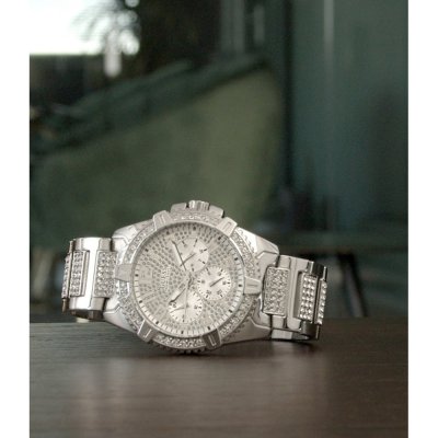 Diese Guess Uhr hat ein Edelstahl Gehäuse mit einem Durchmesser von 48 mm und ist mit einem Armband aus Edelstahl versehen. In der Uhr arbeitet ein Seiko Instruments Inc. Uhrwerk. Das Glas der Uhr besteht aus Mineral - Glas.