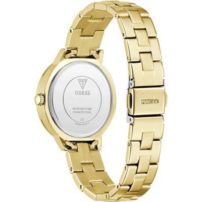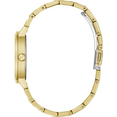 Diese Guess Uhr hat ein Edelstahl Gehäuse mit einem Durchmesser von 34 mm und ist mit einem Armband aus Edelstahl versehen. In der Uhr arbeitet ein Seiko Uhrwerk. Das Glas der Uhr besteht aus Mineral - Glas.