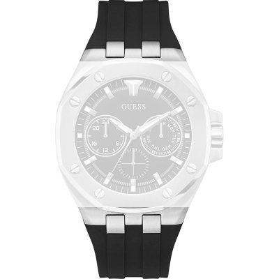 Dieses Guess Uhrarmband ist aus silikon gefertigt und wird mit druckstifte an der Uhr befestigt. Das Band hat eine Breite von 28.5 mm und wird mit einer dornschließe geschlossen. Das Uhrenarmband hat keine gerade Halterung, was bedeutet, dass dieses Band nur für die unten aufgeführten Uhren geeignet ist.