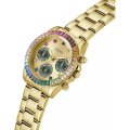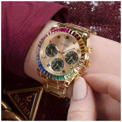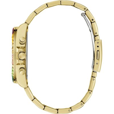 Diese Guess Uhr hat ein Edelstahl Gehäuse mit einem Durchmesser von 38 mm und ist mit einem Armband aus Edelstahl versehen.