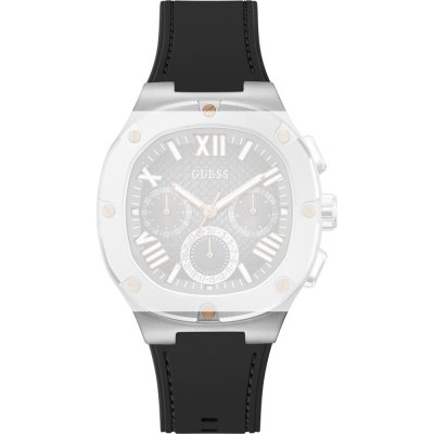 Dieses Guess Uhrarmband ist aus silikon gefertigt und wird mit stahlstifte an der Uhr befestigt. Das Band hat eine Breite von 25 mm und wird mit einer dornschließe geschlossen. Das Uhrenarmband hat keine gerade Halterung, was bedeutet, dass dieses Band nur für die unten aufgeführten Uhren geeignet ist.