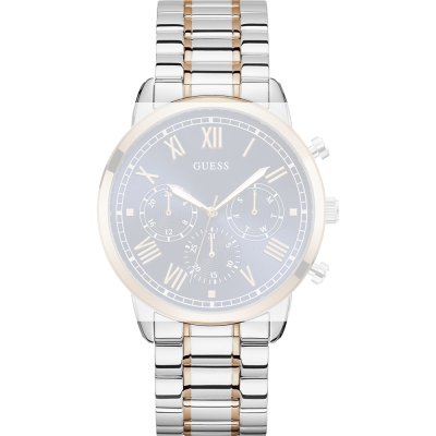 Dieses Guess Uhrarmband ist aus metall gefertigt und wird mit druckstifte an der Uhr befestigt. Das Band hat eine Breite von 22 mm und wird mit einer faltschließe mit Druckknöpfen geschlossen. Das Uhrenarmband hat keine gerade Halterung, was bedeutet, dass dieses Band nur für die unten aufgeführten Uhren geeignet ist.