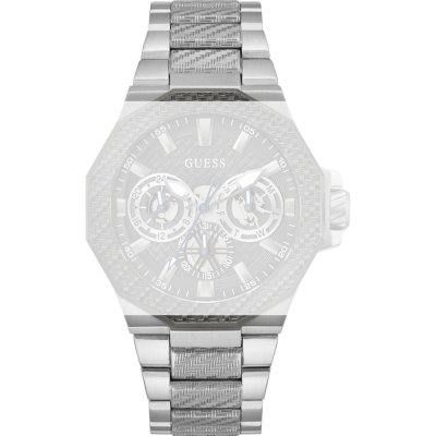 Dieses Guess Uhrarmband ist aus edelstahl gefertigt und wird mit stahlstifte an der Uhr befestigt. Das Band hat eine Breite von 27 mm und wird mit einer faltschließe mit Druckknöpfen geschlossen. Das Uhrenarmband hat keine gerade Halterung, was bedeutet, dass dieses Band nur für die unten aufgeführten Uhren geeignet ist.